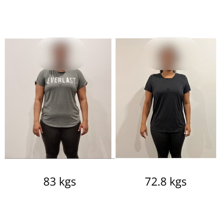 As a busy mom of two, I lost 10+ kg in 6 months while still enjoying my favorite foods! I feel stronger, more energized, and more confident. If I can do it, so can you. Highly recommending your services!